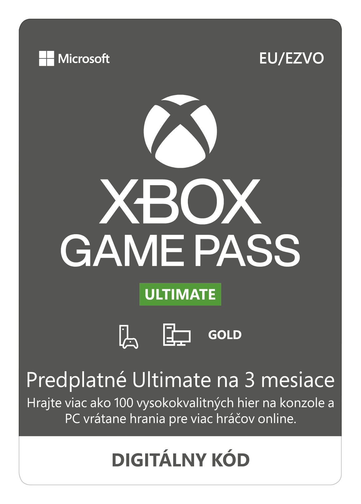- Xbox Game Pass Ultimate: Zahŕňa predplatné Xbox Game Pass for Console, for PC a členstvo Xbox Live Gold. Existujúci používatelia s členstvom Gold, predplatným Game Pass pre konzolu alebo pre PC alebo s členstvom EA Play sa skonvertujú na predplatné Ultimate prevodným pomerom. Konverzie sú konečné.